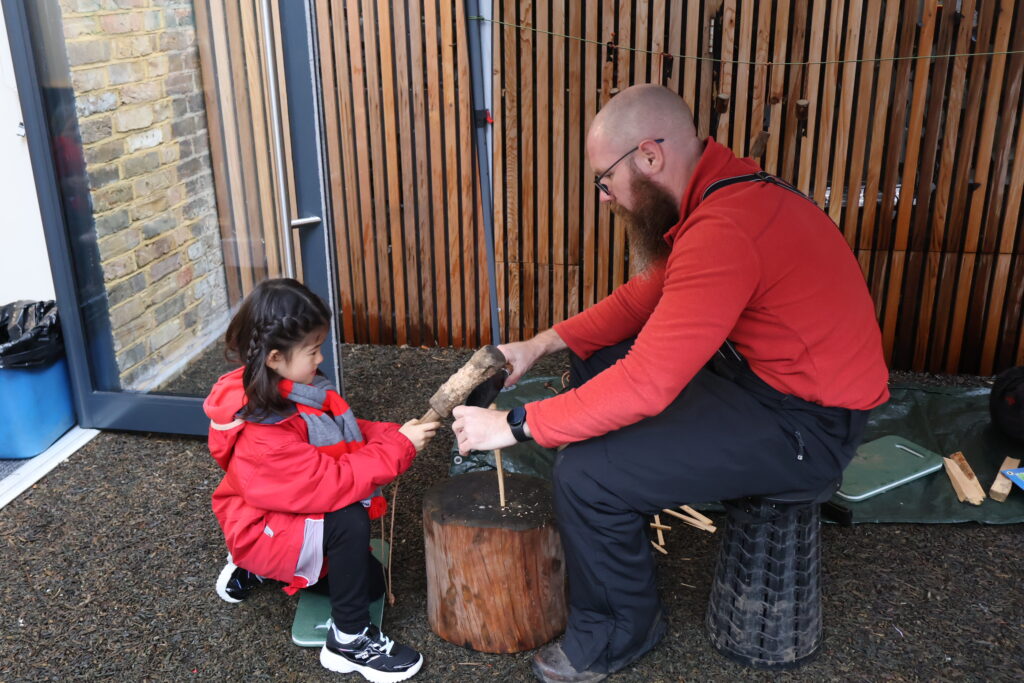 Year 2 embraced new challenges at Forest School, while also developing practical skills. One of the highlights was using a billhook to cut wood again. The children were re-introduced to this traditional tool and reminded how to handle it with care and respect. With close supervision, they practised controlled movements, focusing on the technique of how to position the wood securely and make steady, deliberate cuts. We also had an exciting introduction to archery. For many, it was their first time holding a bow; we began by learning the basics of how to stand with a balanced stance, hold the bow correctly and aim with focus. A key emphasis was on taking our time; drawing the bow slowly, keeping the arm holding the bow straight and concentrating on the target. The children showed great determination and it was fantastic to see their progress with each attempt. Throughout the session, the children supported one another and celebrated each other’s achievements.