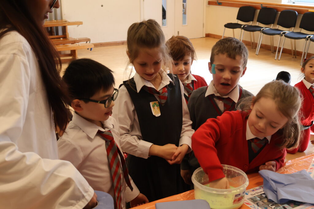 Our recent Science Day was a fantastic success! We were thrilled to welcome Mother Nature Science to the school for a full day of hands-on workshops and exciting experiments, which began with an energetic ‘Superhero Show’ in assembly. Throughout the day, pupils took part in engaging sessions and experiments. Kindergarten and KS1 thoroughly enjoyed the ‘Super Slime’ workshop, while KS2 explored ‘Our Diverse Planet.’ KS1 pupils were especially delighted to take their slime creations home, making it a memorable and fun-filled celebration of science for all!