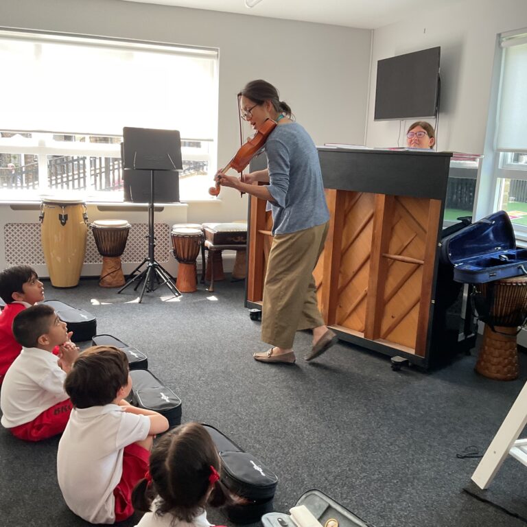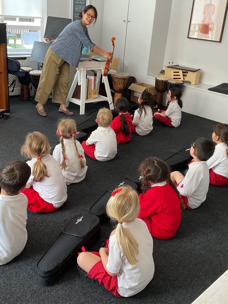 This week the children in Kindergarten had their very first violin group lesson. We looked at the different parts of the violin, we practised how to hold the bow and what it looks (and sounds like!) to pluck a string.
