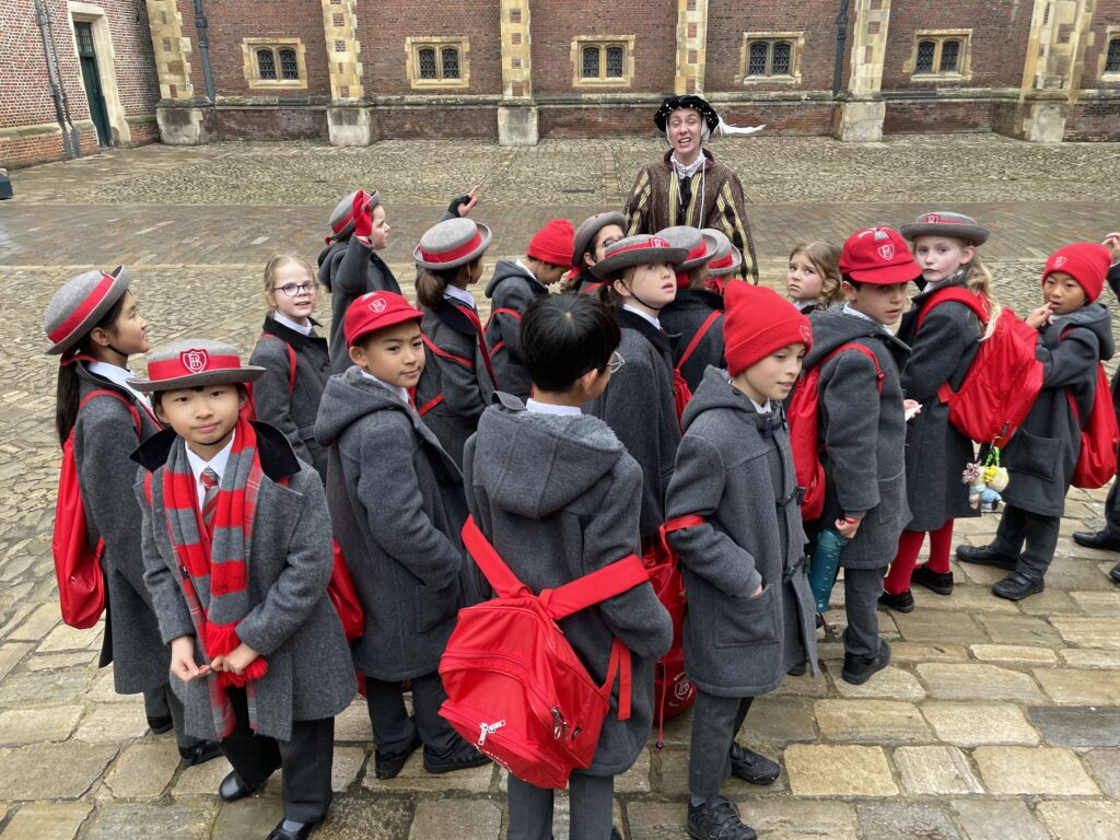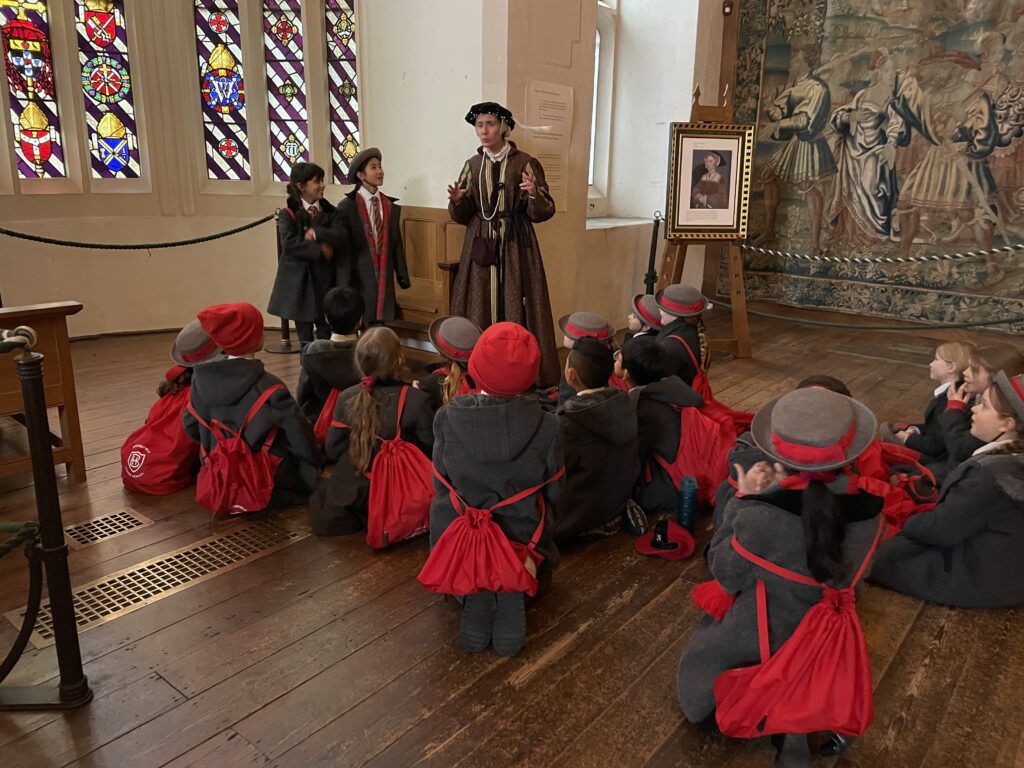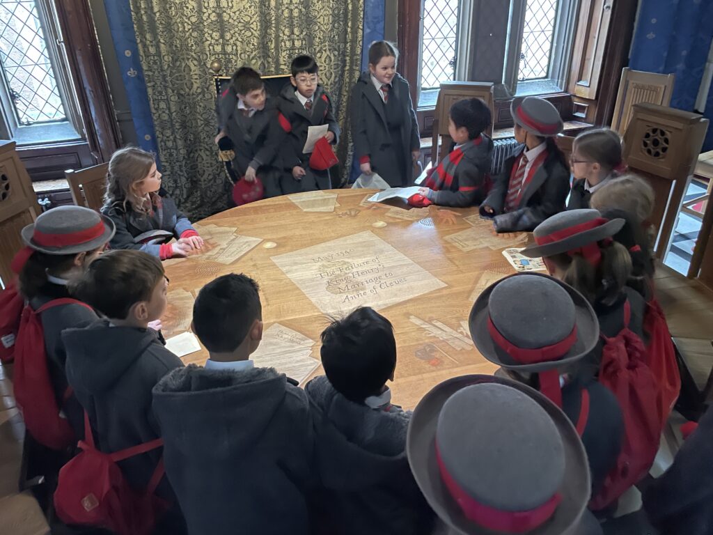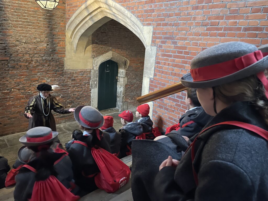 On Thursday 5th February, Year 4 visited Hampton Court Palace as part of our History topic on Henry VIII and the magnificent palaces he built for himself. The children were fantastically behaved throughout the day and were truly blown away by the beauty and scale of the palace. Our tour began at Anne Boleyn’s Gate and led us through many impressive rooms, including the Great Hall, where up to 600 of Henry VIII’s guests would have dined. Pupils had the chance to sit in the grand chairs and imagine life in Tudor times while learning fascinating historical facts. We explored the Horn Room, the Procession Chamber and Henry VIII’s Chapel, where we saw a replica of the King Henry VIII’s crown, before briefly visiting the gardens and courtyards. The trip also included a hands-on workshop led by an actress portraying a Tudor lady-in-waiting, giving pupils a real insight into palace life, including the rather shocking role of a “Gong Scraper”! Even during our impressive 4km walk, Year 4 represented the school brilliantly. The day also included a quick visit to the shop, where pupils put their mental maths and decimals knowledge to great use. A huge thank you to Mrs Allen and Mrs Stotesworthy for accompanying us, it was a fantastic and memorable trip for all.