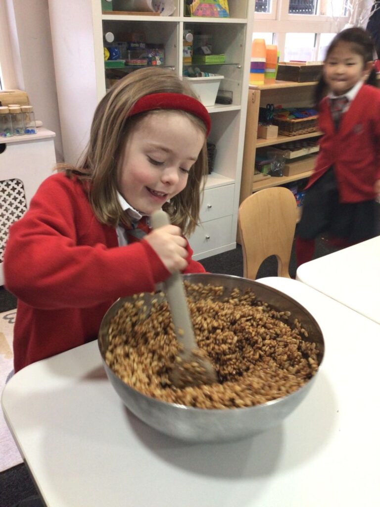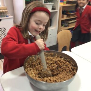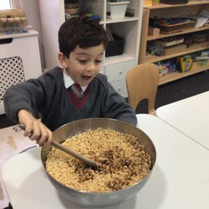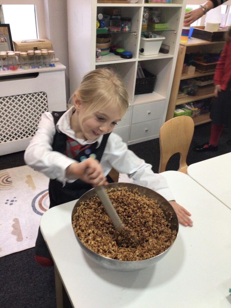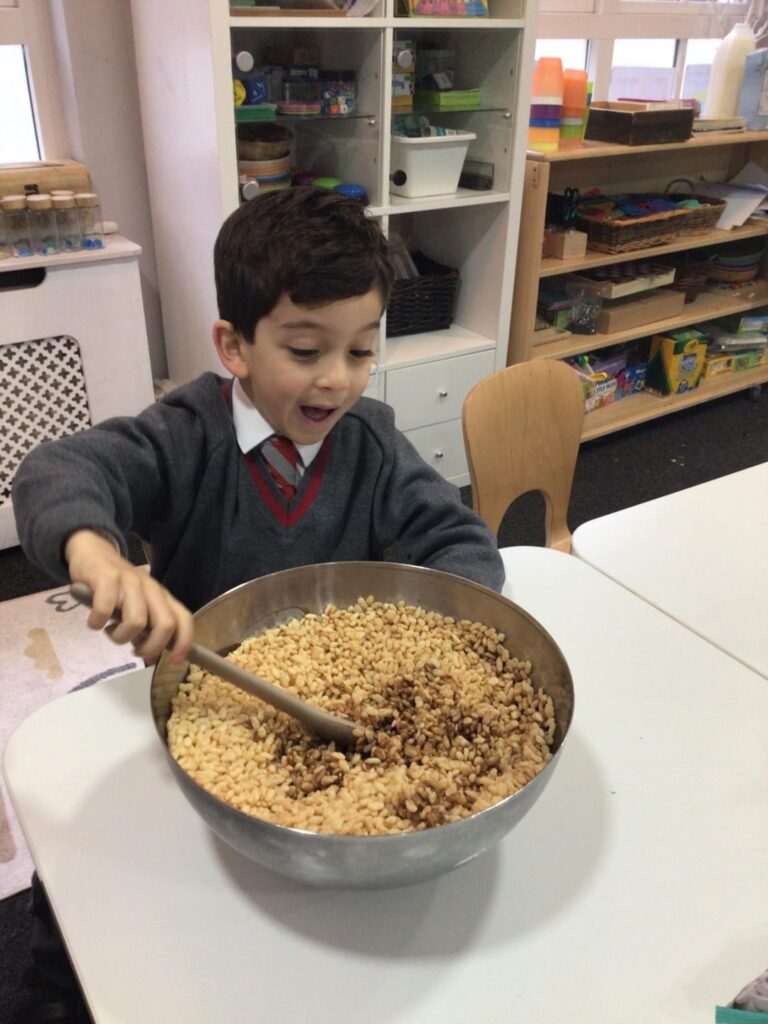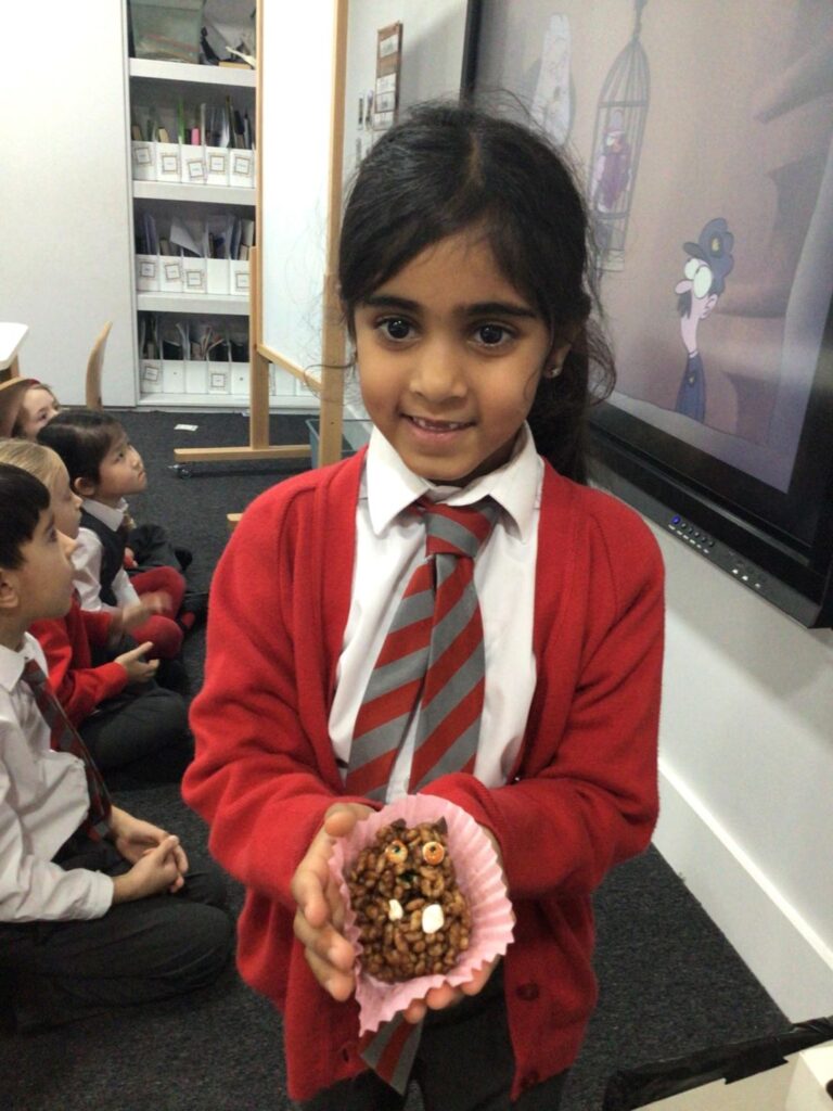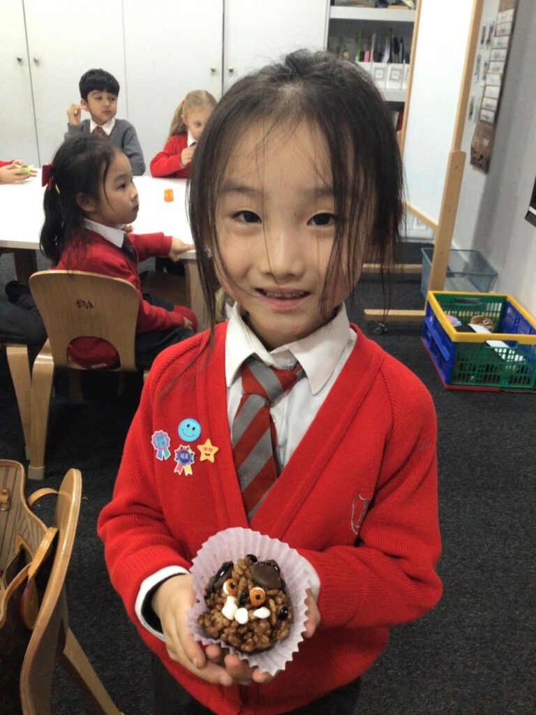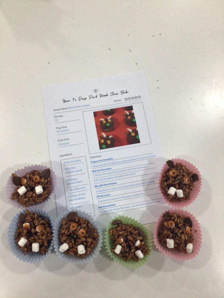 This week Year 1 took to baking to bring their learning in English to life. The children suggested making Gruffalo style cookies, so naturally we took it one step further and made Gruffalo lookalike Rice Krispies cakes!