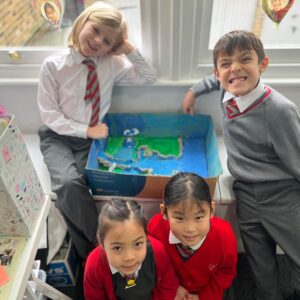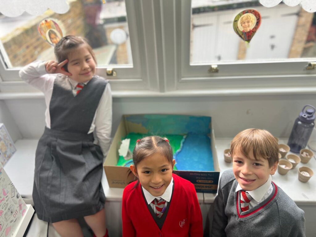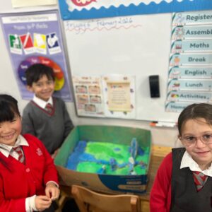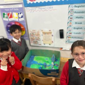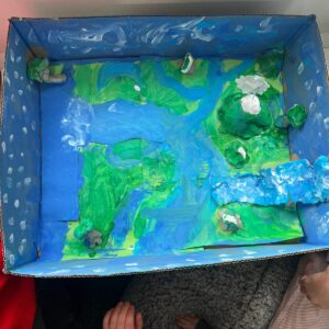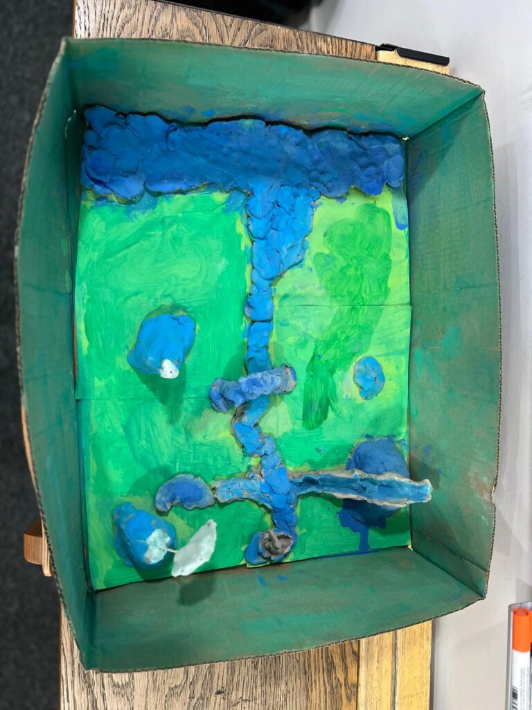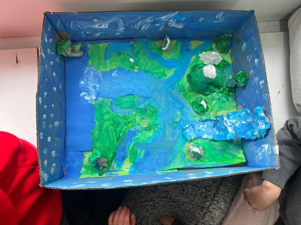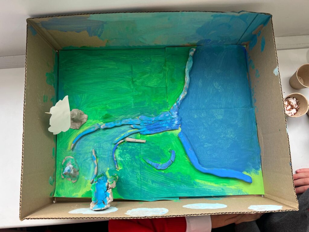 Year 3 have been learning about rivers and made models showing the journey of a river from the source in the mountains to the mouth of the river opening out into the sea. They did a fantastic job including many of the features they had learnt about including waterfalls and tributaries in the upper course, meanders and even some oxbow lakes in the middle course and the river broadening out in the lower course. It was great to see them working together and actively engaged in their learning.