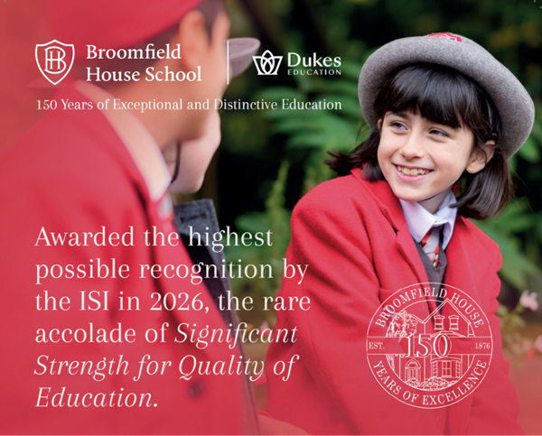 We are delighted to share that the ISI has awarded Broomfield a Significant Strength in the Quality of Education — the highest commendation available — recognising exceptional teaching, outstanding progress and a warm, nurturing community.